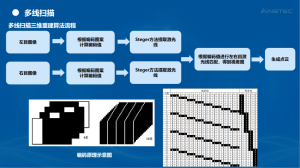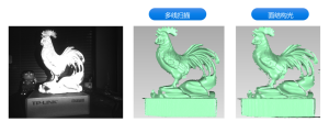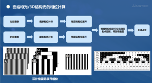 2.面结构光/3D结构光是指投射相移条纹+格雷码条纹,顺利获得解算相位的方式匹配同名点。